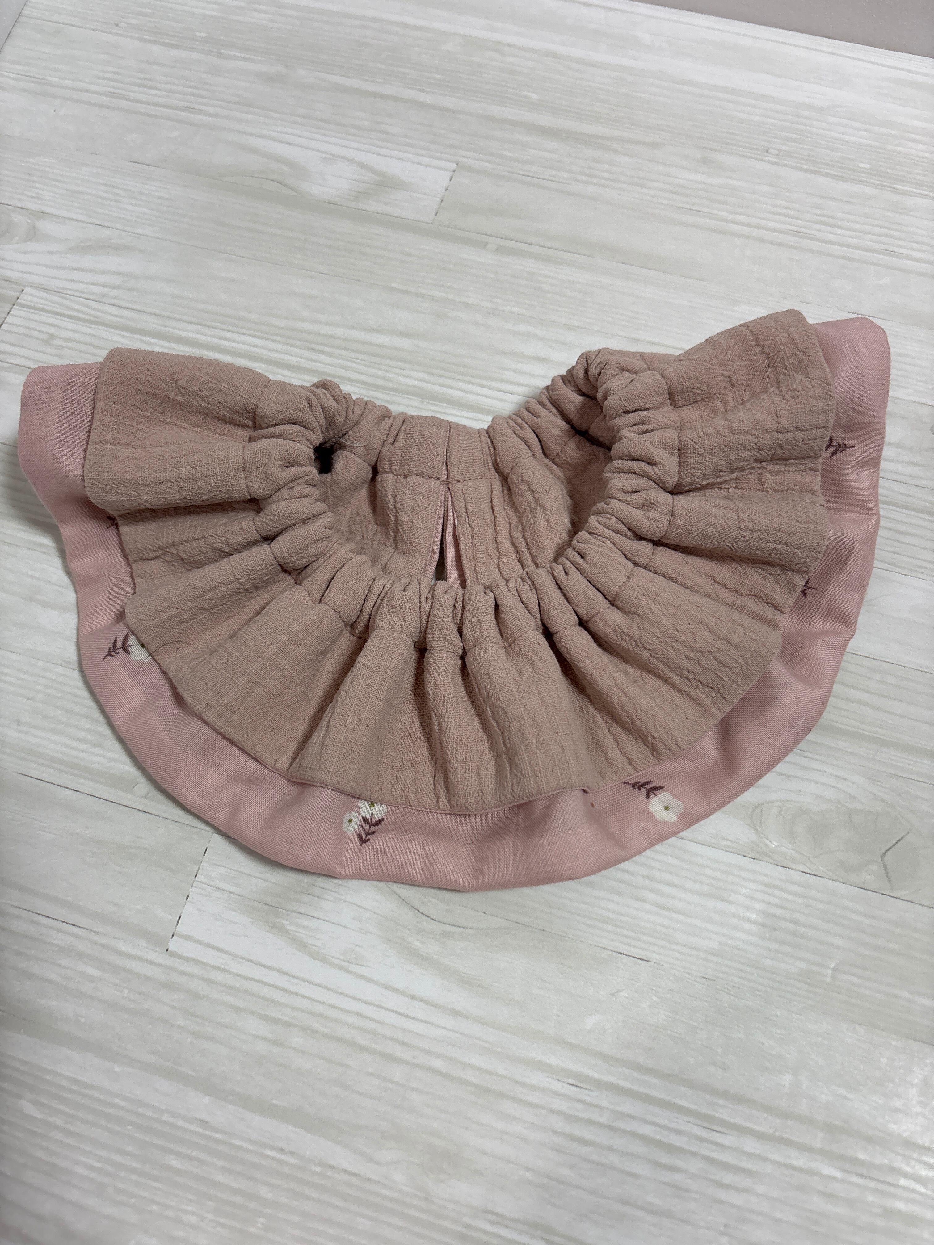 ふわふわのダブルガーゼで作られた、ナチュラルなフリルスタイです