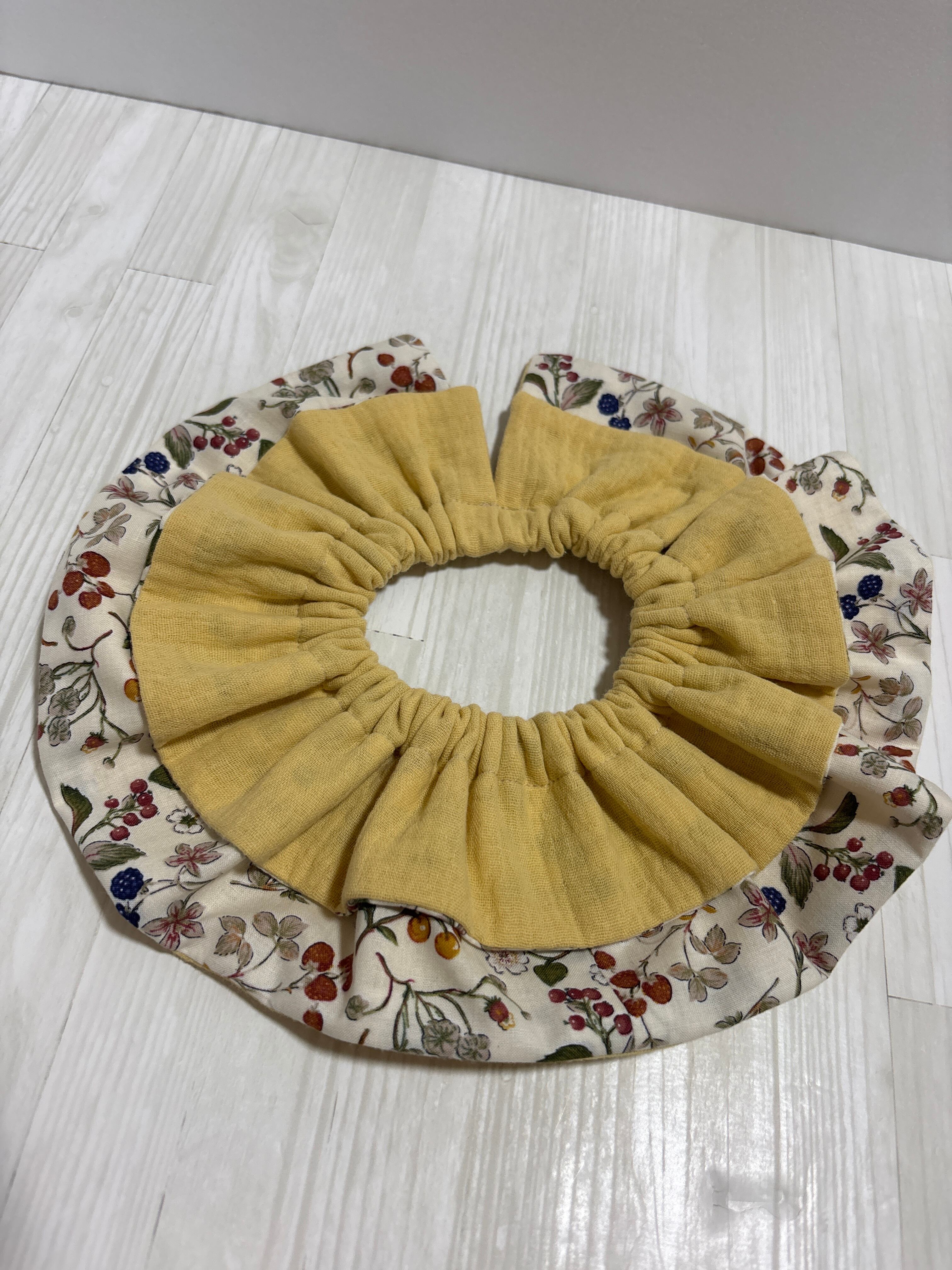 ふわふわのダブルガーゼで作られた、ナチュラルなフリルスタイです