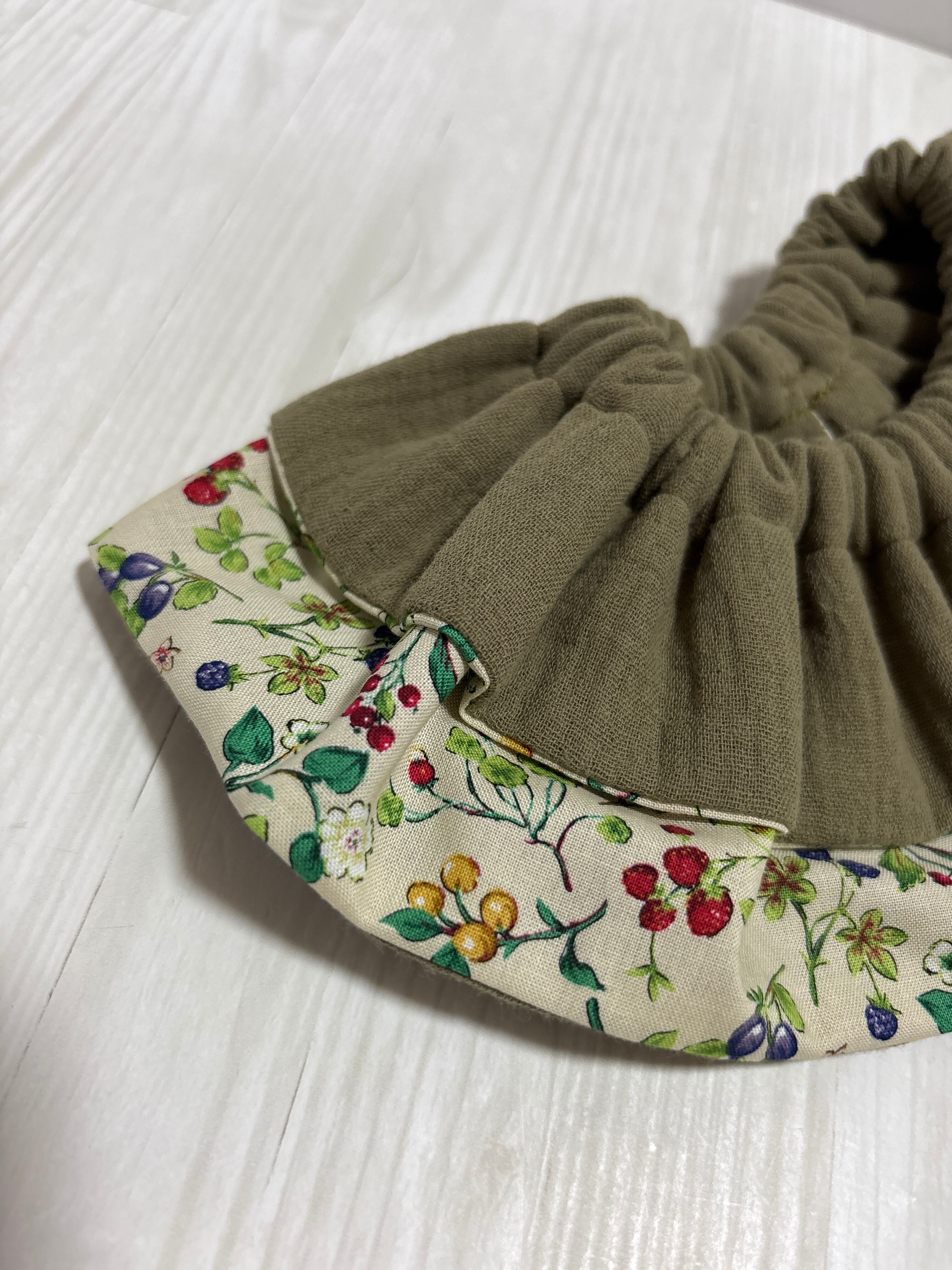 ナチュラルダブルガーゼに花柄生地を使用し、優しい印象を与えます。