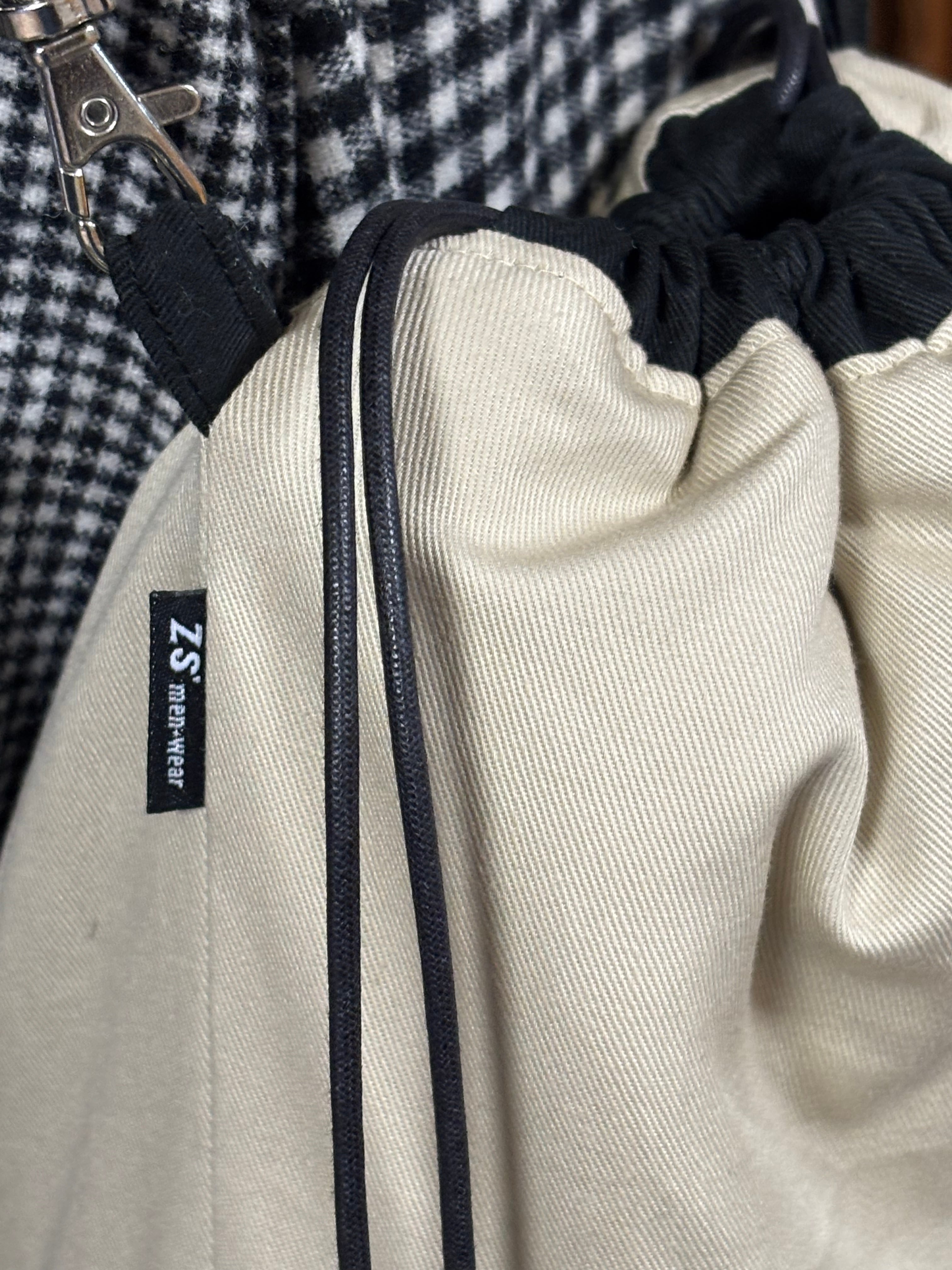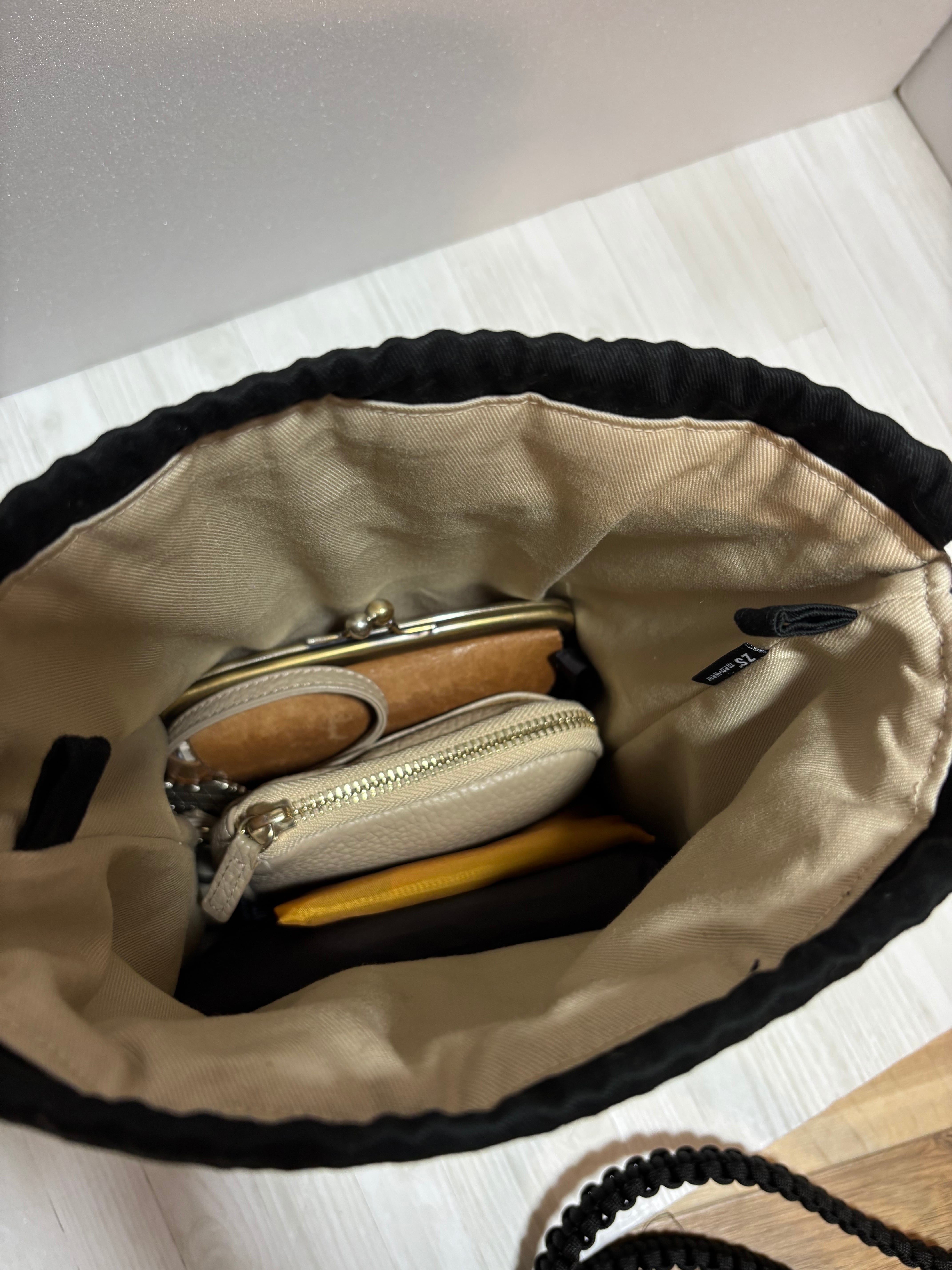 巾着バック⚘⚘黒色キルティングとベージュのリバーシブルパラコードショルダー別売りஐ..*..*☆*。